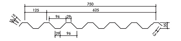 YFD35-125-750樓承板即可以做為屋面板,墻面板用也可以作為建筑底板使用,作為屋面及墻面板使用時具有美觀,施工方便,耐用等優點,做為模板使用時具有承載能力強,安裝方便快速,抗震效果好等優點。